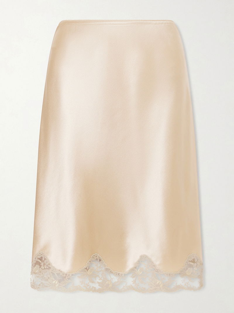 Lace-trimmed Silk-satin Skirt