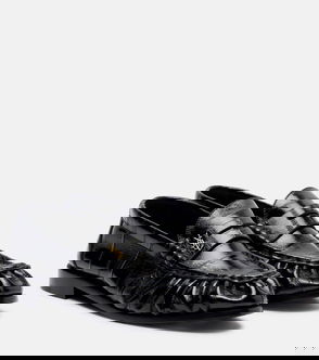 Saint Laurent's Le Loafer showcases a distinctive leather construction and a handstitched finish. The classic penny loafers are defined by the signature Cassandre logo resting on the right side in gold-toned detail.