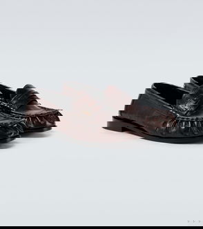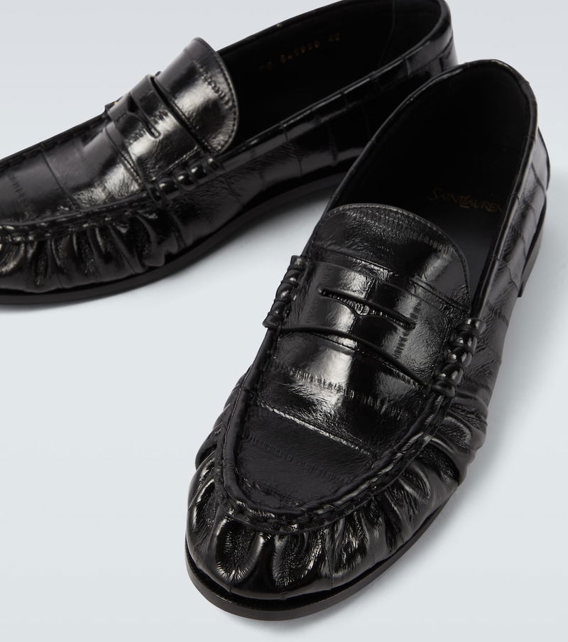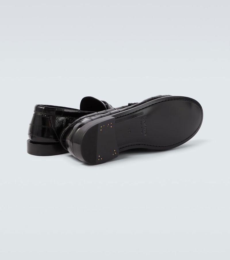 Saint Laurent presents the classic Le Loafer in shiny supple leather, complemented by a hand-stitched finish. These penny loafers are decorated with the signature Cassandre logo on one side.