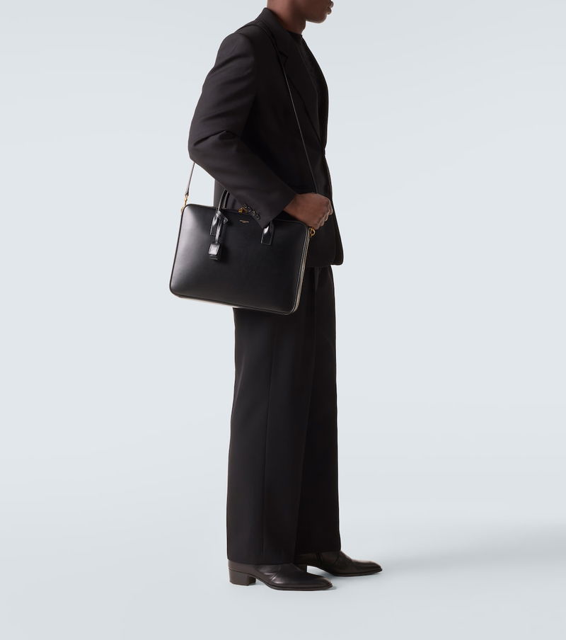 Since its conception in 1961, Saint Laurent has been coveted for its elegant Parisian aesthetic. Crafted from supple leather, this sleek briefcase features a detachable shoulder strap, two-way zipped top closure, and signature gold-toned hardware.