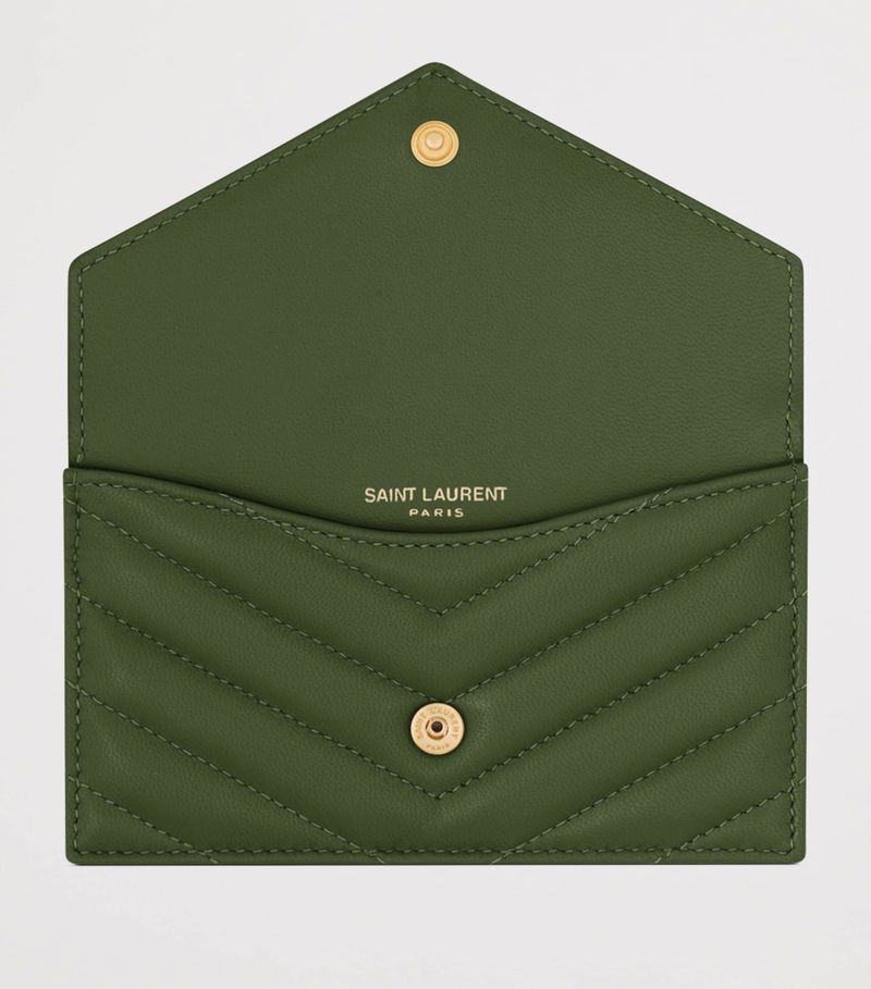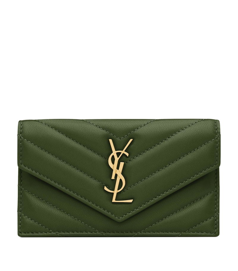 Sleek and memorable, Saint Laurent's Cassandre collection is characterised by iconic topstitching. This flap card holder is equal parts sophisticated and practical, with its signature details - like the ysl plaque - being accompanied by a main press-stud compartment for your daily essentials.