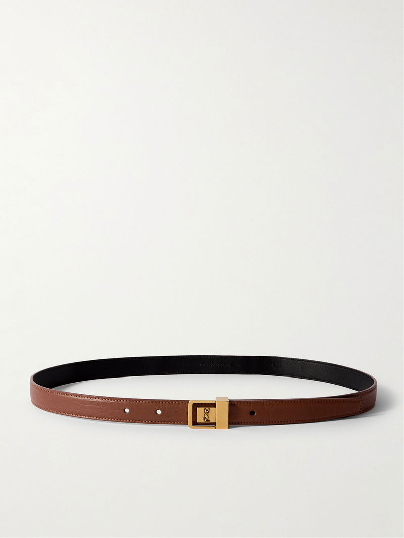 SAINT LAURENT's waist belt is centered with the brand's instantly recognizable 'YSL' logo plaque, so it'll elevate any outfit. It's crafted from supple leather and has a slim profile.