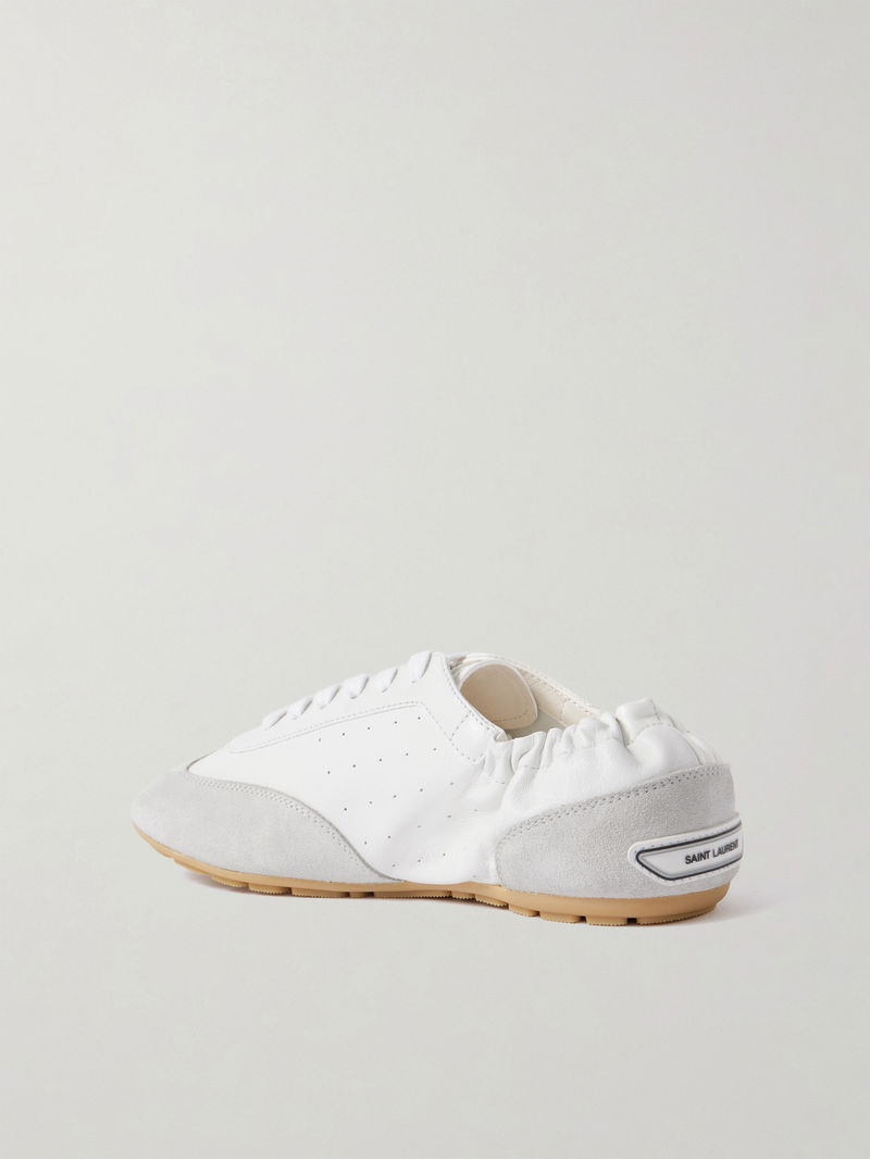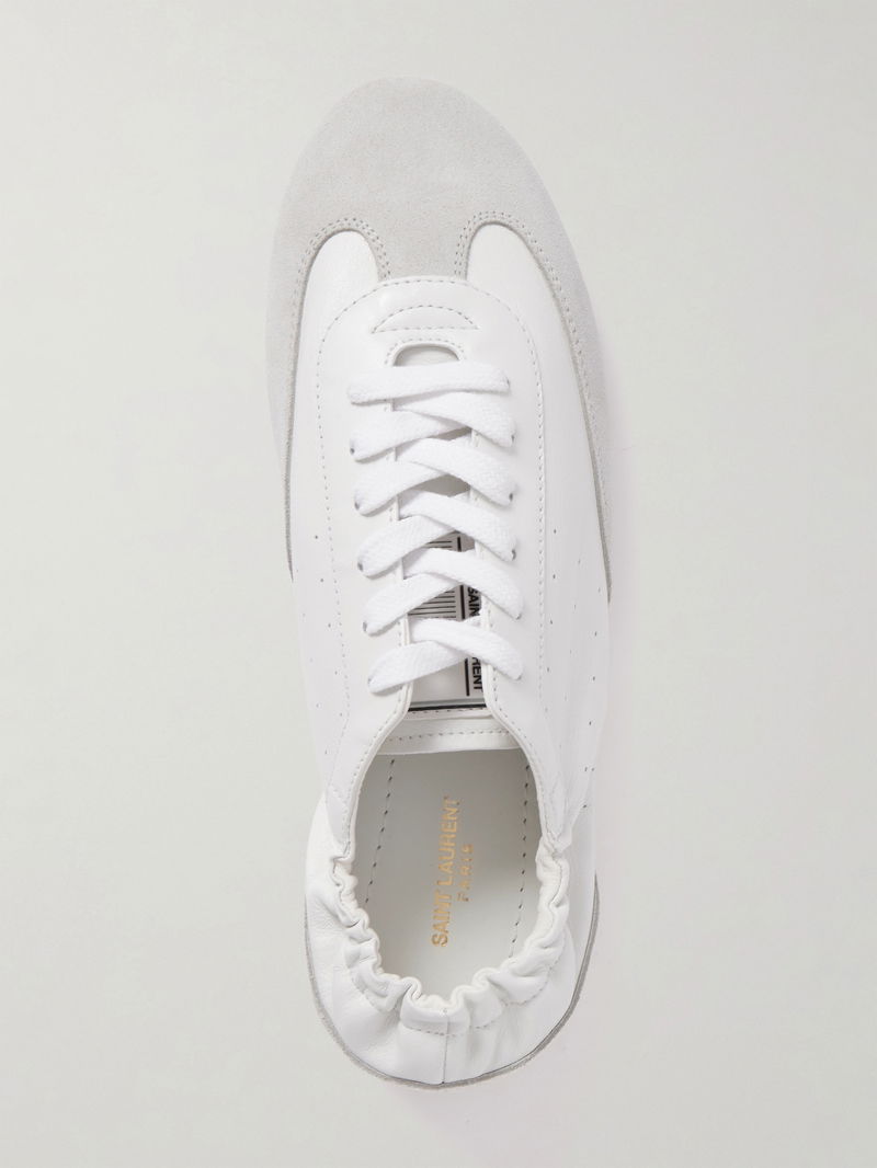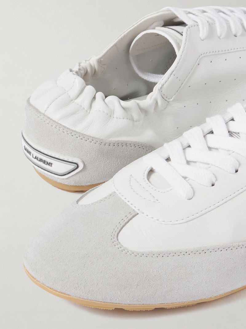 SAINT LAURENT's 'Lewis' sneakers offer refined ease for everyday dressing. Made from supple leather trimmed with tonal suede, they have a lace-up front and elasticated heel. Perforations along the sides and logo tabs bring a retro feel.