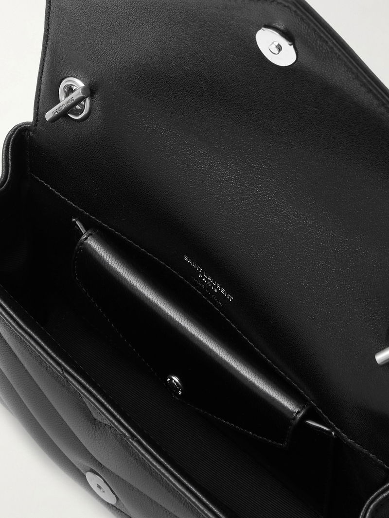 Originally created by graphic designer Adolphe Jean-Marie Mouron in 1962, SAINT LAURENT's iconic 'YSL' monogram continues to be recognized as a symbol of quality and luxury. This mini version of the quilted 'Loulou' bag has been made in Italy from smooth leather detailed with signature chevron stitching. It has a well-organized interior with a buttoned pocket for your travel card and ID, plus enough space for your phone, keys and sunglasses.