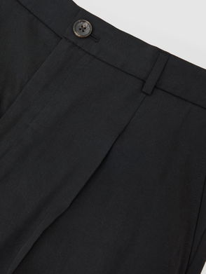 Closure: concealed button placket. Pockets: five pockets. Belt loops.