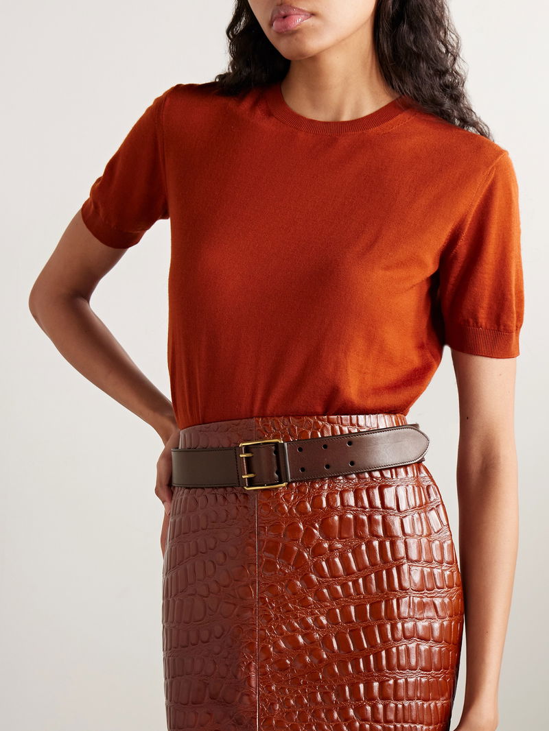 SAINT LAURENT's 'Motorcycle' belt will add a slight edge to your look. Inspired by the styles found on biker jackets, it's been crafted in Italy from vegetable-tanned leather and fastens with a gold-tone double-pin buckle.