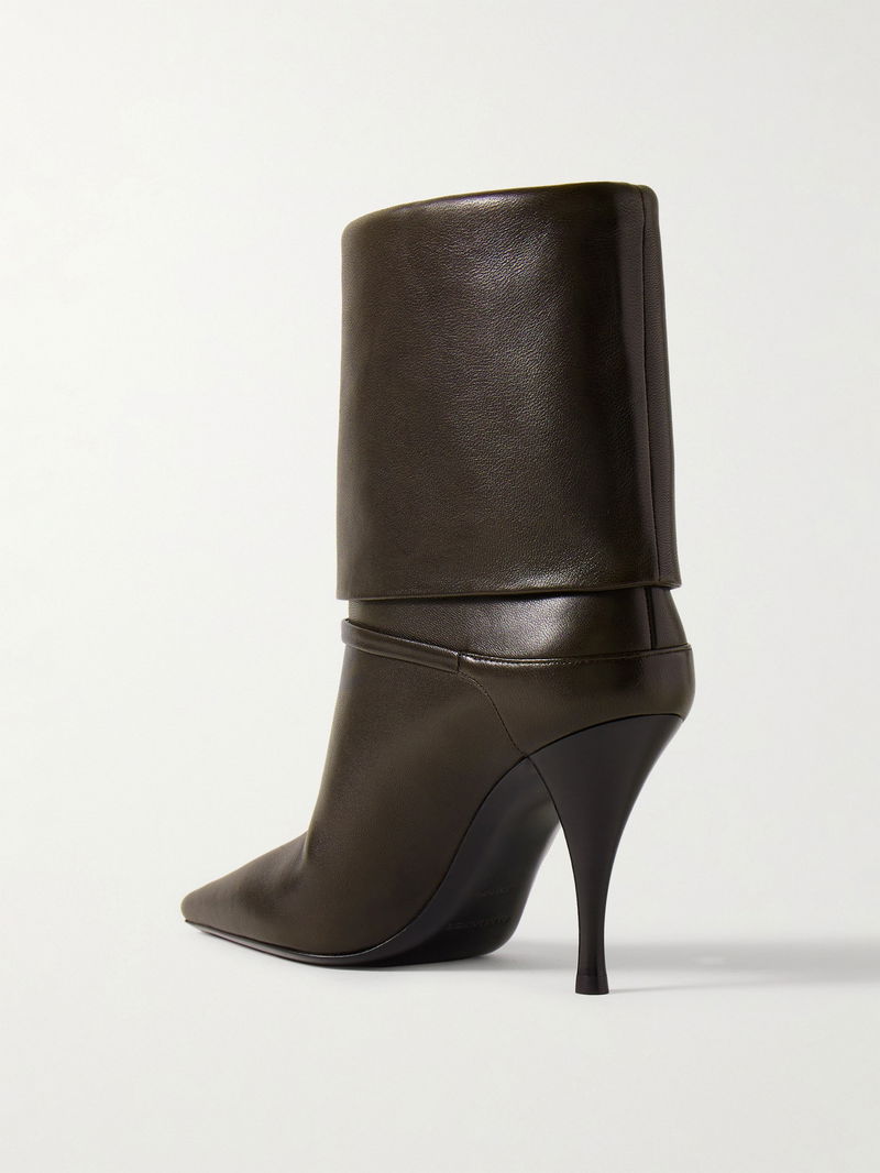 SAINT LAURENT's ankle boots have folded cuffs that create an 80s vibe. They've been made in Italy from smooth leather and are topped with the same 'YSL' plaque that adorns all of the accessories in the 'Niki' collection.