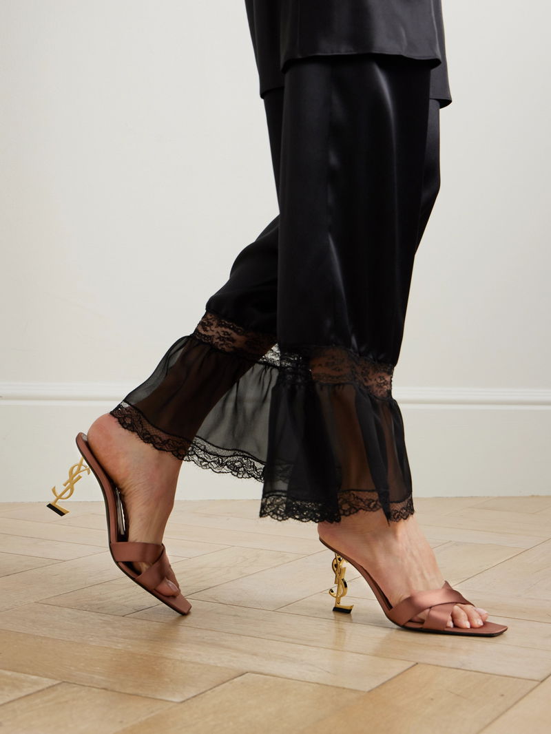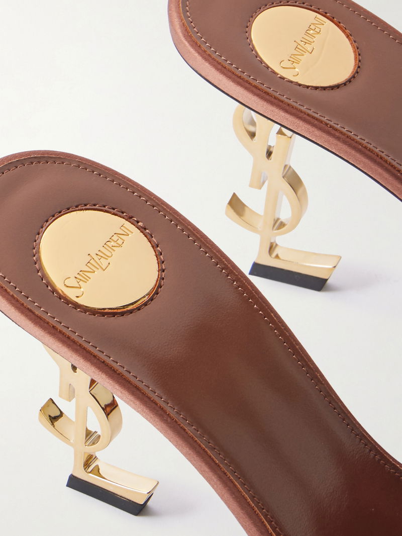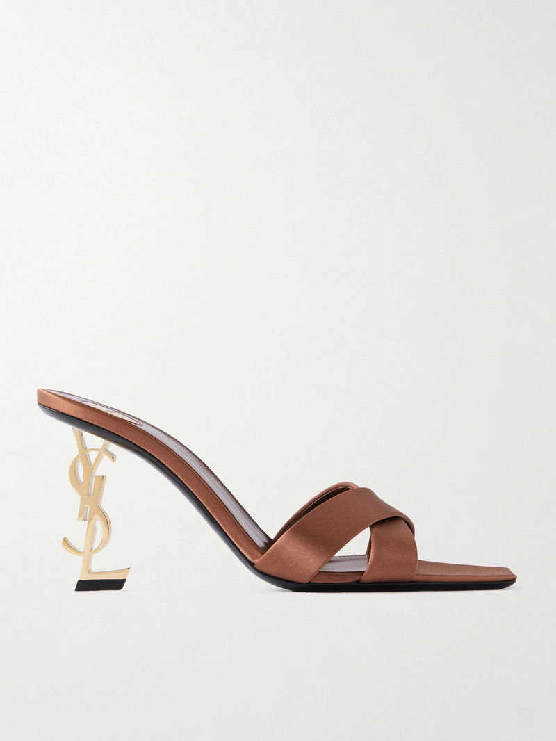 SAINT LAURENT's mules are set on 85mm heels in the shape of the 'YSL' emblem - a defining feature in the label's 'Opyum’ range. They’ve been made in Italy from satin and have crisscross straps.