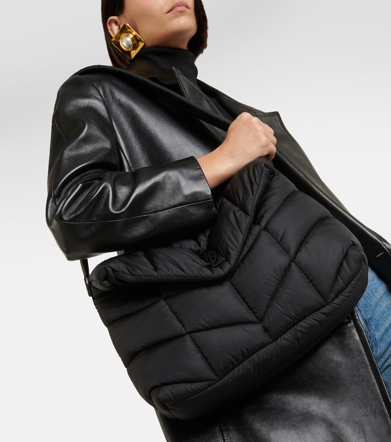 A new take on the Loulou, the Puffer Medium shoulder bag from Saint Laurent has a softly padded exterior and signature chevron quilting. It's crafted in Italy from the brand signature ECONYL® and is finished with the label's iconic YSL monogram.