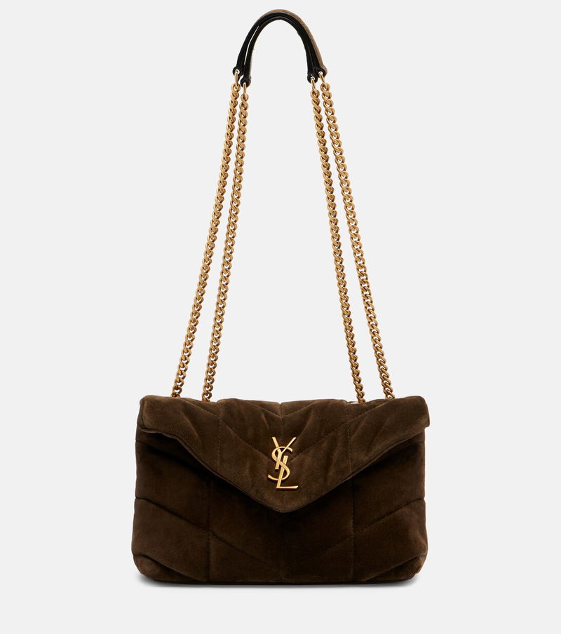 A new take on the iconic Loulou, the Puffer Toy shoulder bag from Saint Laurent has a padded exterior and signature chevron quilting. This iteration is crafted from suede and features the brand's unmistakable Cassandre logo.