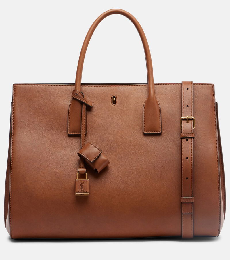 A Saint Laurent signature, the Sac De Jour Large tote bag is a sophisticated style. Crafted from grained brown leather, the design has a structured silhouette and an adjustable shoulder strap for crossbody wear.