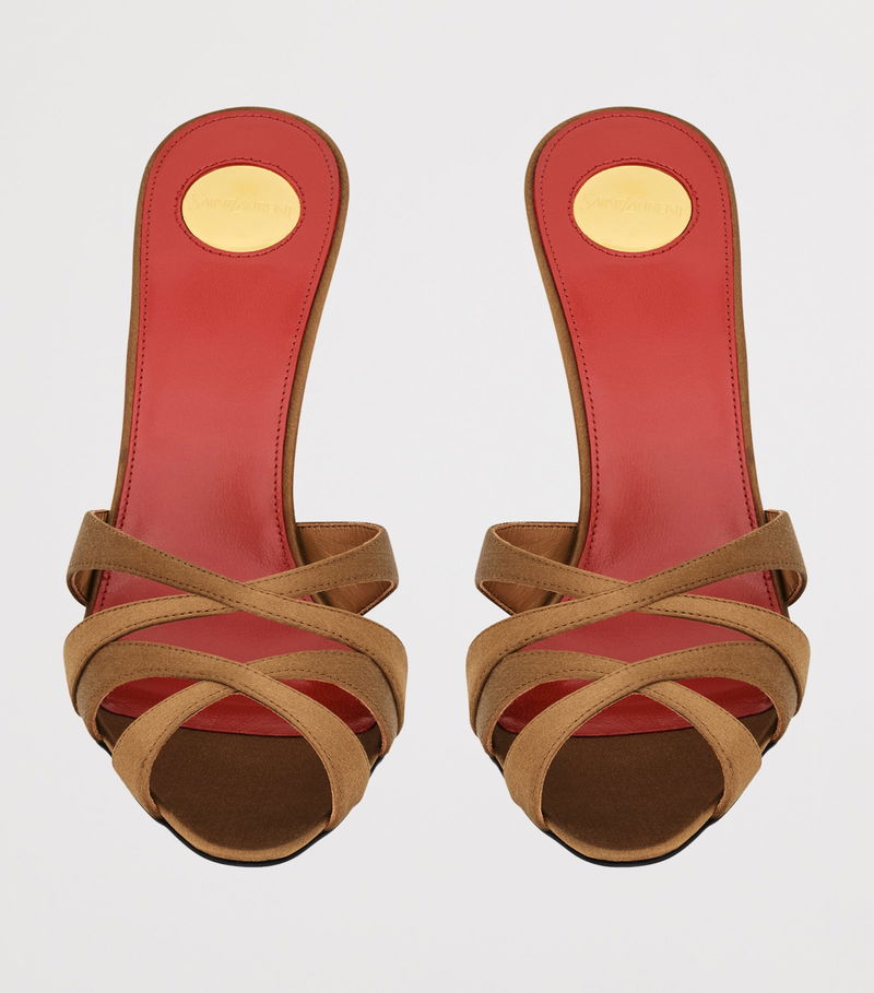 Characteristic of the Maison's clean-line excellence, their satin construction culminates with crisscrossed toe straps that elegantly wrap around the foot.
