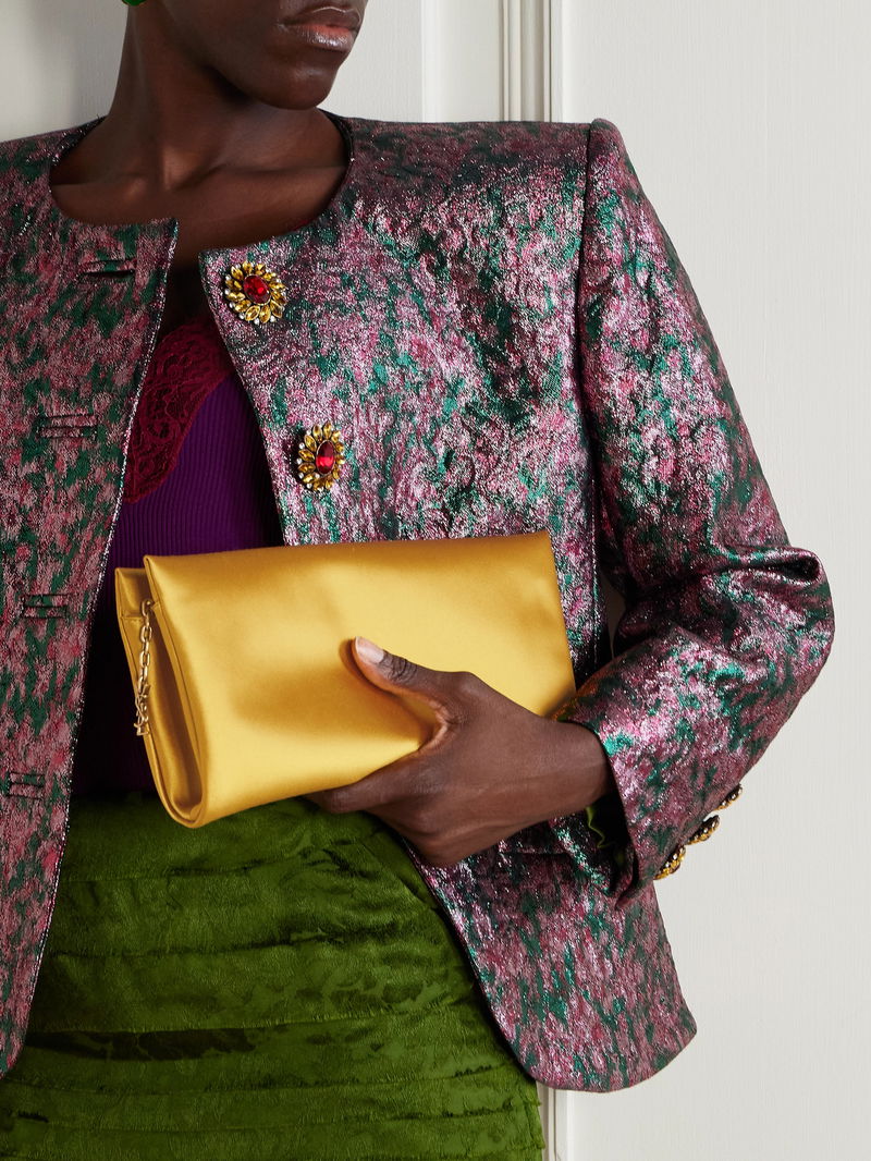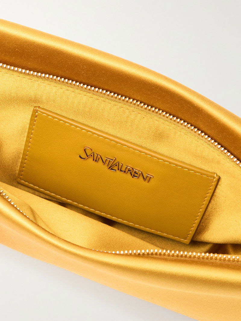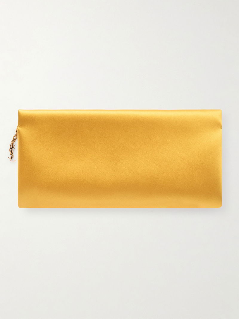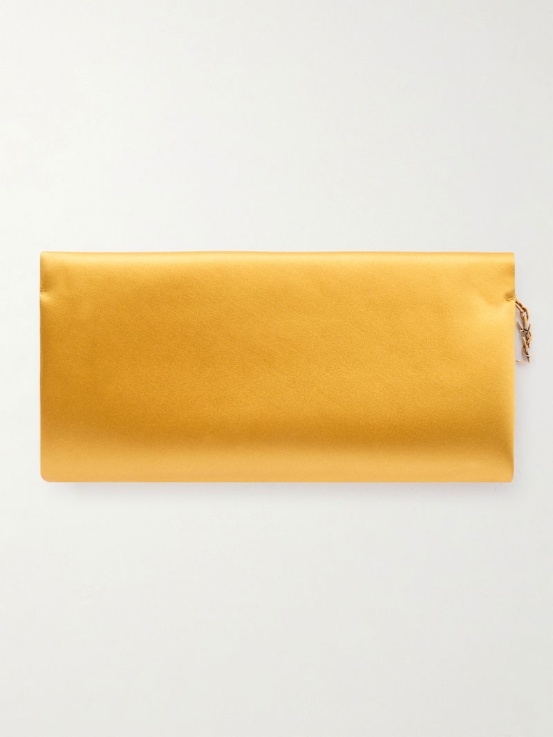 SAINT LAURENT's clutch is made from lustrous satin in a pretty yellow shade. It has a slim, elongated shape and is detailed simply with the label's moniker and gold-tone 'Cassandre' charm. Inside, there's enough room for your keys, lipstick and compact while the leather slip pocket can fit your most-used cards.