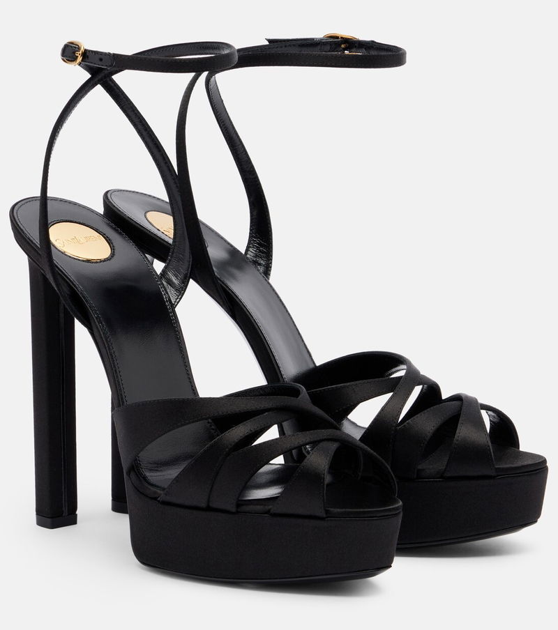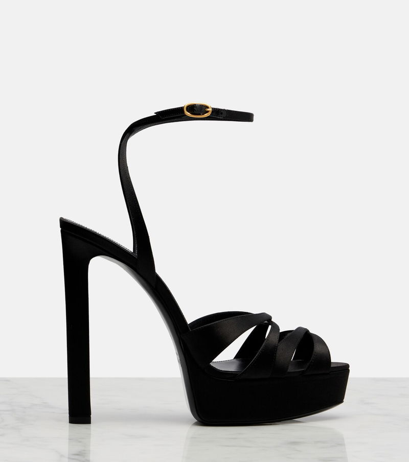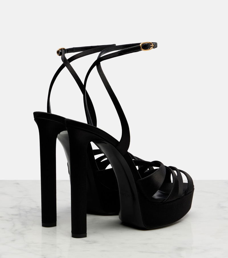 Since its conception in 1961, Saint Laurent has been coveted for its elegant Parisian aesthetic. These sandals rest on statement platforms and are crafted in Italy from black satin.