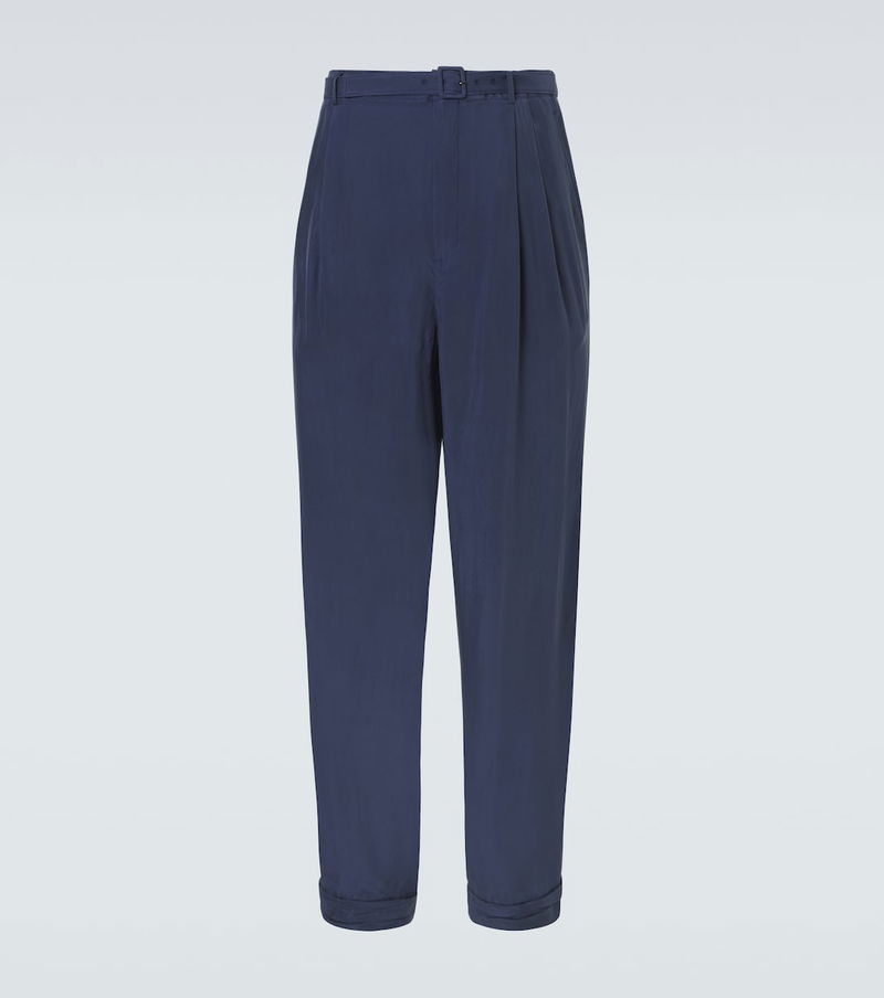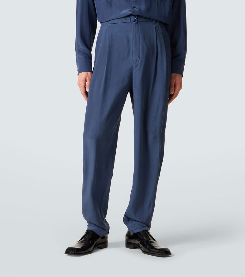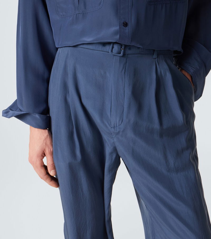 Since its conception in 1961, Saint Laurent has been coveted for its elegant Parisian aesthetic. These straight-leg pants are crafted from lustrous silk habotai and feature a belted waist and double pleats for a softly structured look.