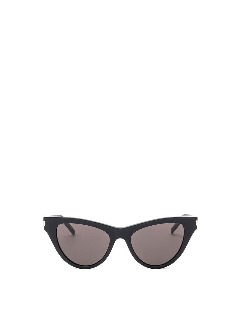 This cat eye Saint Laurent sunglass comes in a black frame with black smoke lenses.