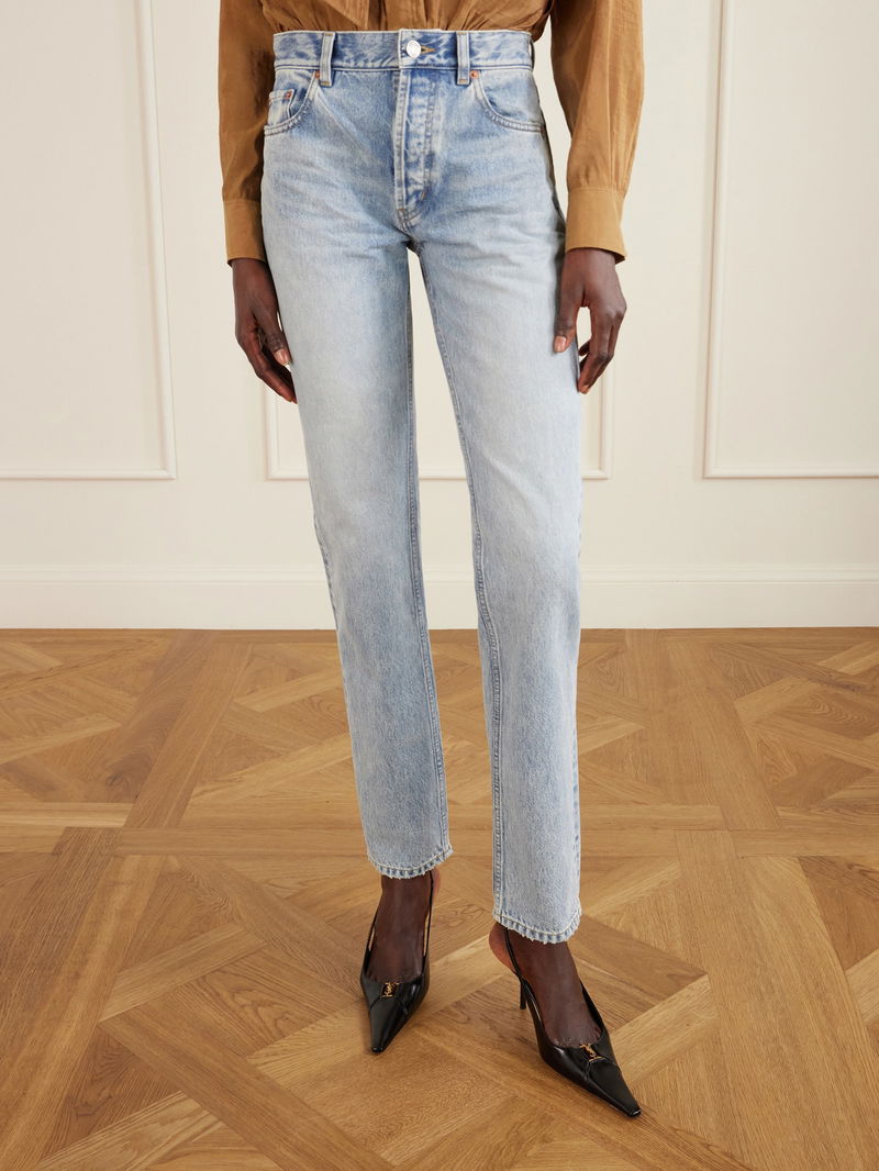 Made in Japan from light-blue denim, SAINT LAURENT's jeans are heavily whiskered and faded to evoke the charm of a lived-in pair.