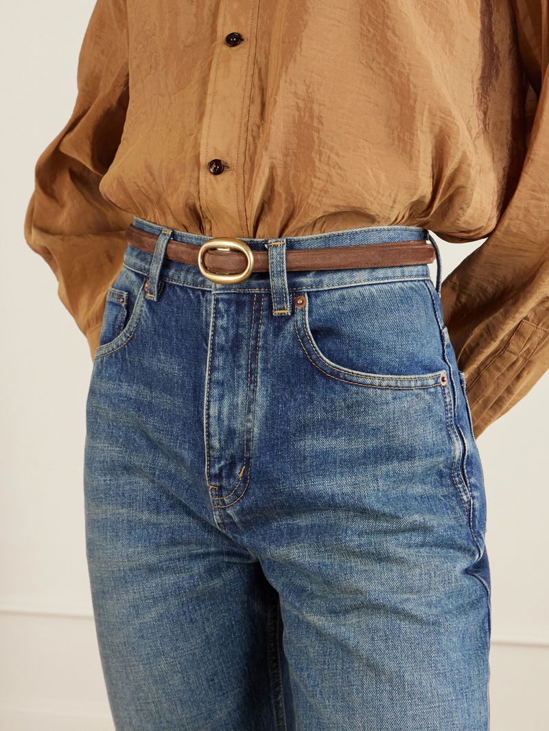 A keen eye for detail means SAINT LAURENT devotes special attention to finishing pieces like this belt. It's crafted from soft suede and centered by a gold-tone oval buckle, subtly etched with the Maison's moniker. - Net a Porter