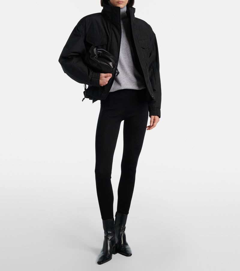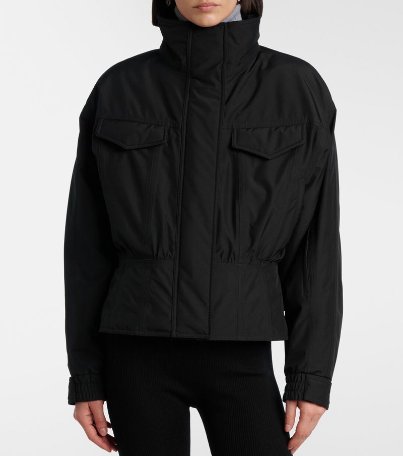This jacket is designed for Saint Laurent's Ski Capsule Collection. Made from water-resistant canvas, this piece is designed with a high neck, shoulder pads, and an elasticated band at the waist.