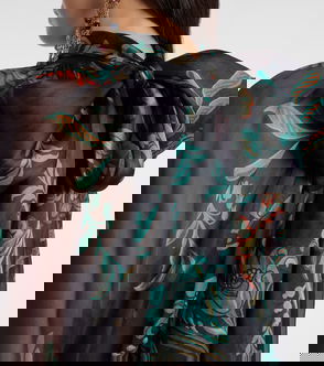 SAINT LAURENT's effortlessly chic blouse has long ties that you can wrap around like a scarf or loop into an oversized bow. It's cut from sheer silk-chiffon and has pleats at the structured cuffs for shape and volume. Layer over a tonal black bra.