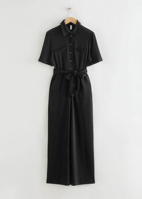 Saint Laurent's runway collection is a celebration of all things sexy and fresh. This jumpsuit is shaped with power shoulders and precision ruching and features a plunging neckline that ends with a twist detail.