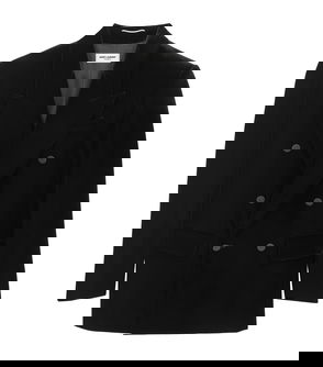 Once again, Prince of Wales-check suits were a prominent feature of Saint Laurent's Autumn/Winter 2025 collection, and this piece is a striking example. Spun from wool into a double-breasted silhouette, its elongated cut delivers a distinctively louche style, perfectly embodying the collection's more relaxed aesthetic.