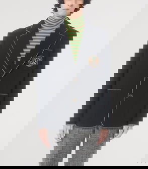 Saint Laurent illustrates its unparalleled craftsmanship with this double-breasted tuxedo jacket, designed for gentlemen who appreciate expert tailoring. An unbeatable option for high-class events, the square-shouldered design boasts contrast peak lapels complemented by matching satin-covered buttons, ensuring an elegant finish to your outfit.
