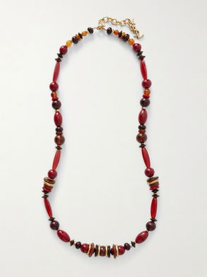 Saint Laurent crafts this gold-tone necklace in Italy with a cylindrical YSL pendant that suspends form a fine curb-link chain.