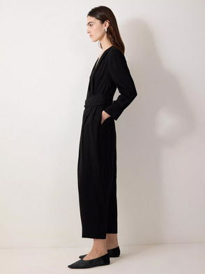 Saloni's jumpsuit is an elegant option for fall occasions and events. Cut from plush velvet, it has lightly puffed sleeves and relaxed, wide legs. The bodice is held together by ornately embroidered sunrays - each one is encrusted with beads and faux pearls to enhance their golden glow.