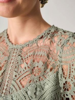 The green Daria dress from Saloni's latest collection is emblematic of the label's feminine yet dynamic aesthetic. Crafted from silk georgette that's woven with a polka-dot pattern, this fitted style is elegantly tiered to create a fluid silhouette. Highlight the bold hue with statement gold heels.