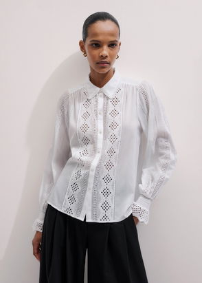 Saloni's 'Dree' shirt is cut from crisp cotton-poplin with dainty broderie anglaise details. The hem is traced by playfully scalloped edges.
