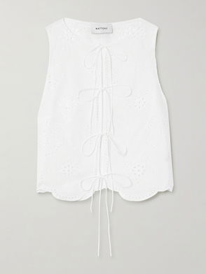 Saloni's 'Meadow' top is a charming summer staple. It's made from airy cotton detailed with intricate broderie anglaise and has a cropped, scalloped hem. Adjust the back ties to your ideal fit and style it with the coordinating shorts.