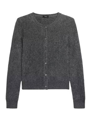 Exposed button fastening at front Regular fit, round neck, long sleeves, tonal buttons, ribbed trims.