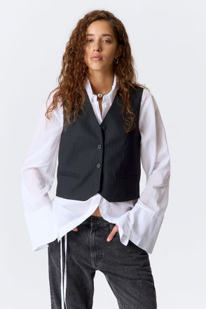 Exposed button. fastening at front Relaxed fit, V-neck, welt pockets at front, all-over stripe pattern.