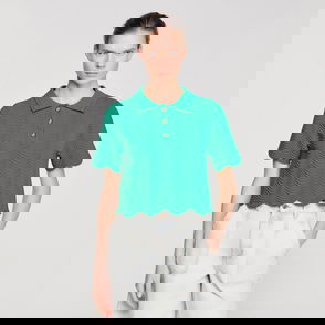 2-in-1 rib knit jumper with round neck and long sleeves featuring trompe l'œil contrast trim, and embellished with a signature tag.