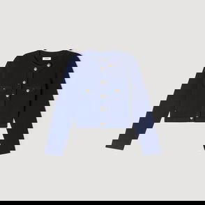 Cardigan with beaded neck, long sleeves, buttoned patch pockets on chest, button placket and textured finish.