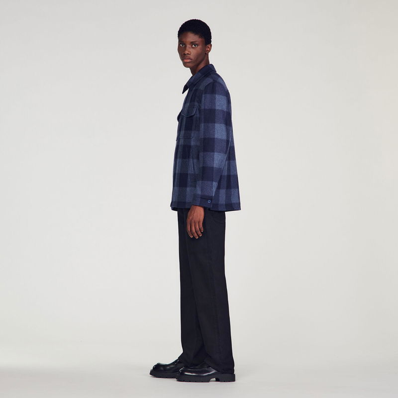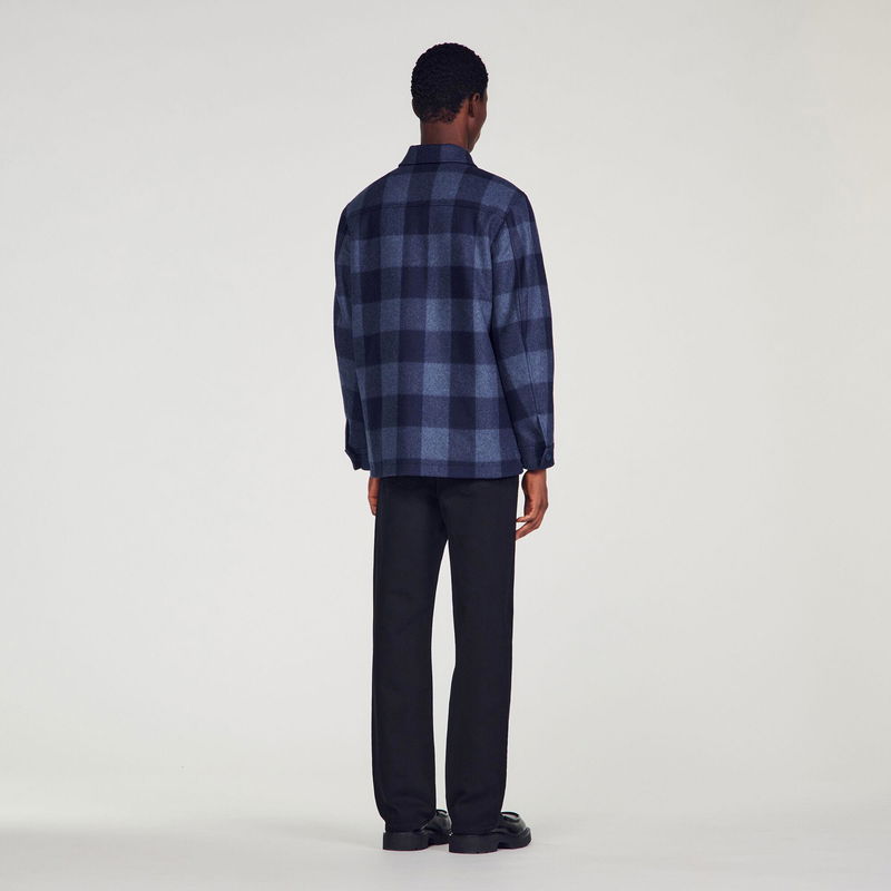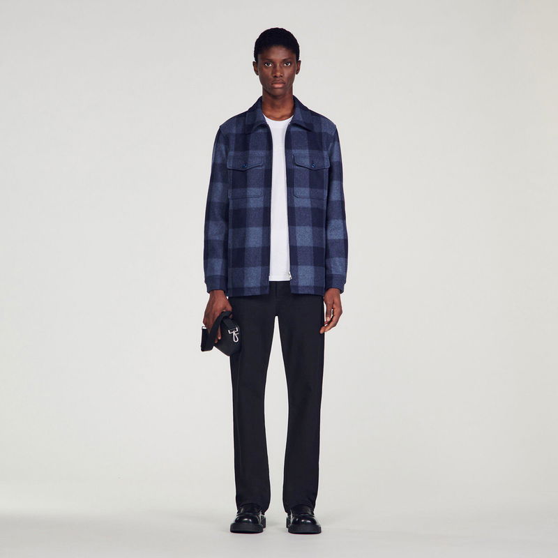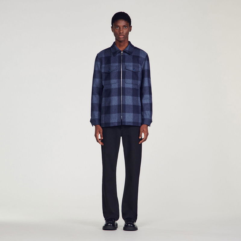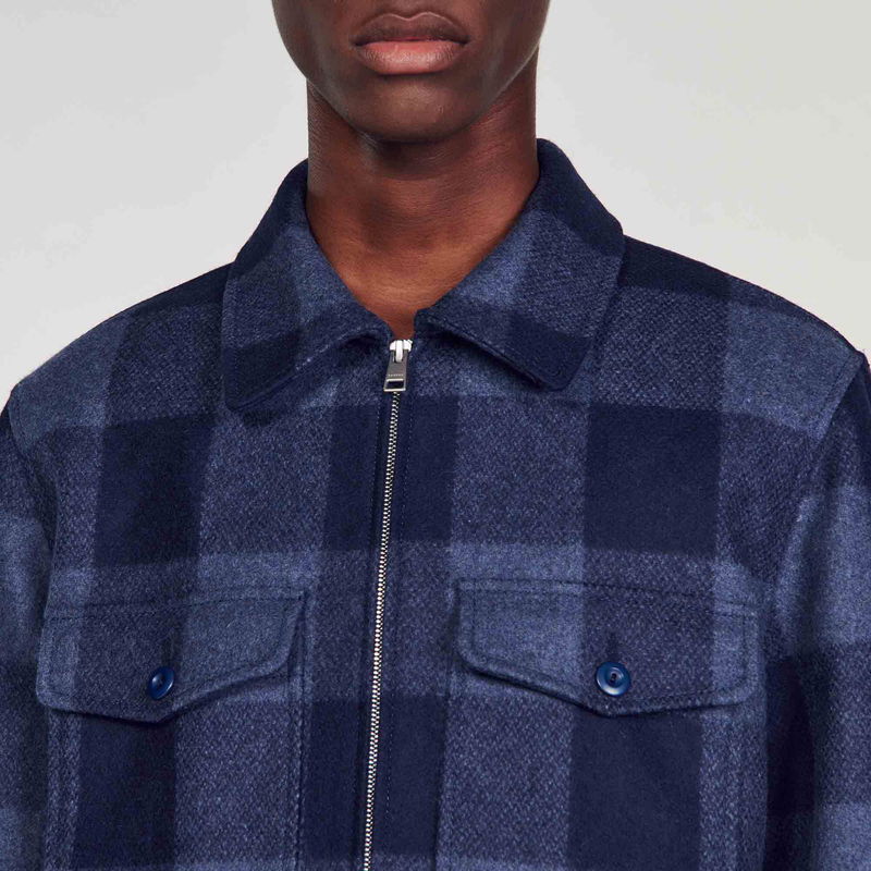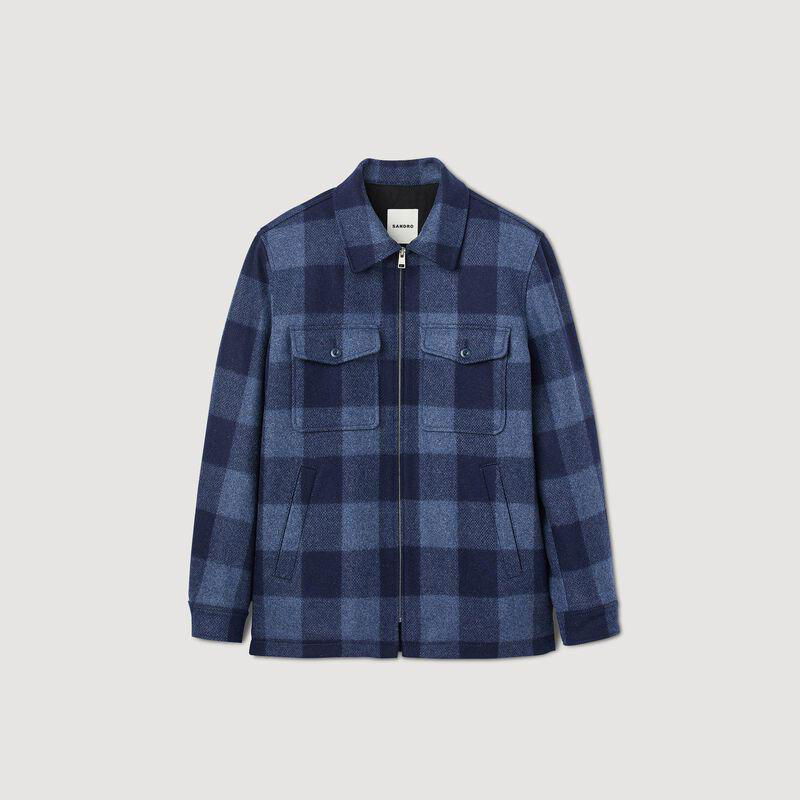 Wool jacket embellished with a check pattern, shirt collar, long sleeves, zip fastening and side and chest pockets.