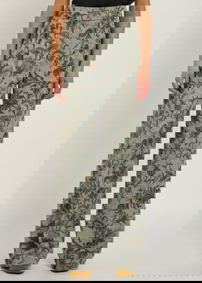 Crocheted trousers with an elasticated waist and floral motif