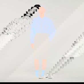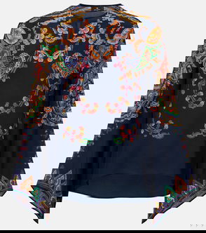 Shirt, Printed, Linen-blend, Rickrack trims, Cropped, Elasticated waist, Elasticated cuffs, Button fastenings through front, Non-stretchy fabric, Mid-weight fabric.