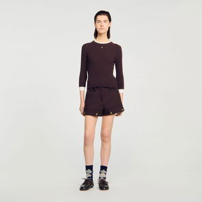 Cropped knit sweater with a polo collar, jewel buttons and long sleeves.