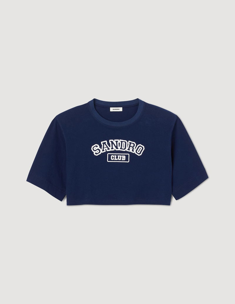 Sandro cropped t-shirt with round neck, short sleeves and 'SANDRO CLUB' embroidery.