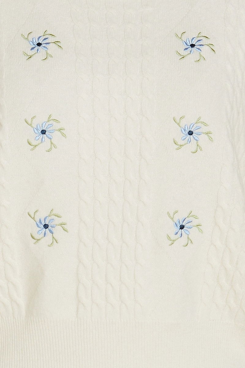 Sweater, Knitted, Wool and cashmere-blend, Embroidered, Ribbed trims, Woven trims, Slips on, Mid-weight knit.