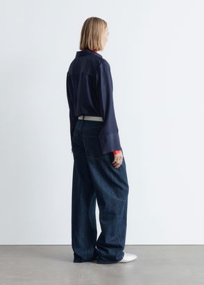 Flowing silk shirt with wide short sleeves and a button placket.