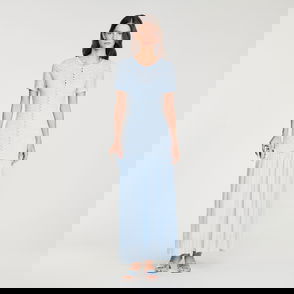 DESCRIPTION Long dress with American armholes, highlighted with an inset lace trim and a flared skirt. Long dress with American armholes, highlighted with an inset lace trim and a flared skirt.