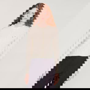Cardigan, Poplin, Cable-knit, Wool-blend, Layered, Button fastenings through front, Mid-weight knit.