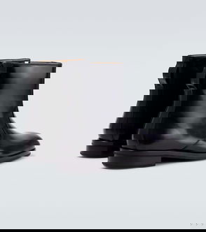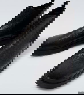 Leather ankle boots with elastic on the sides and a thick notched sole.