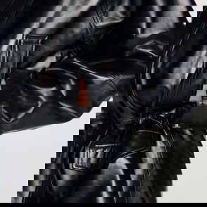Biker jacket, Leather, Snap-fastening tabs, Zipped cuffs, Zipped pockets, Asymmetric zip fastening through front, Fully lined, Supple, non-stretchy leather.