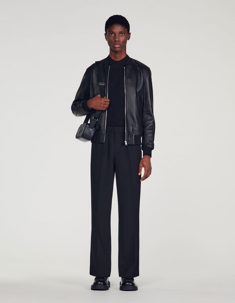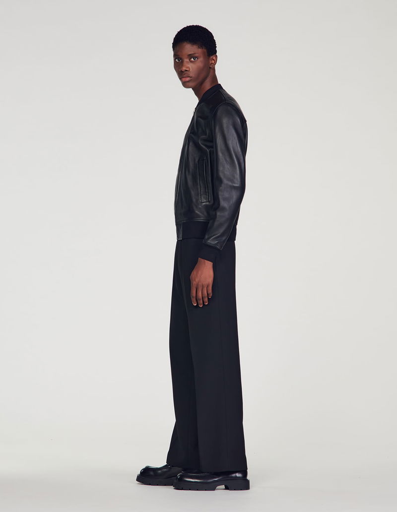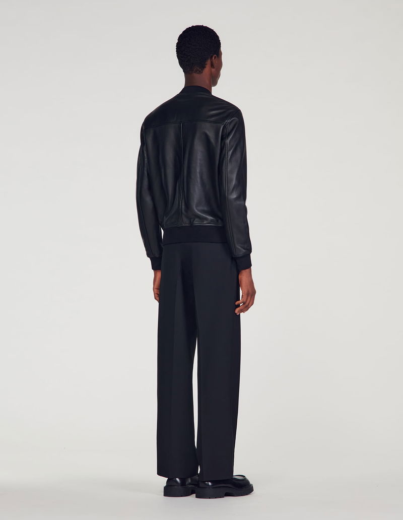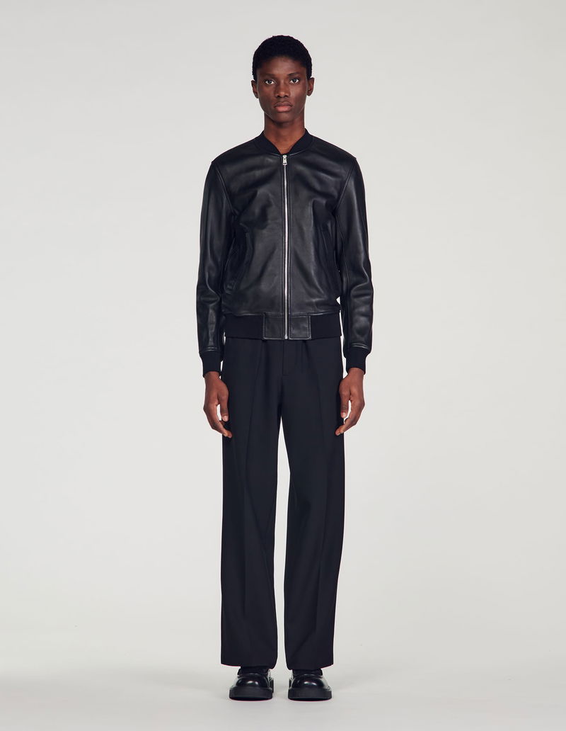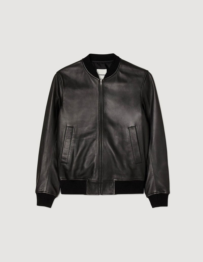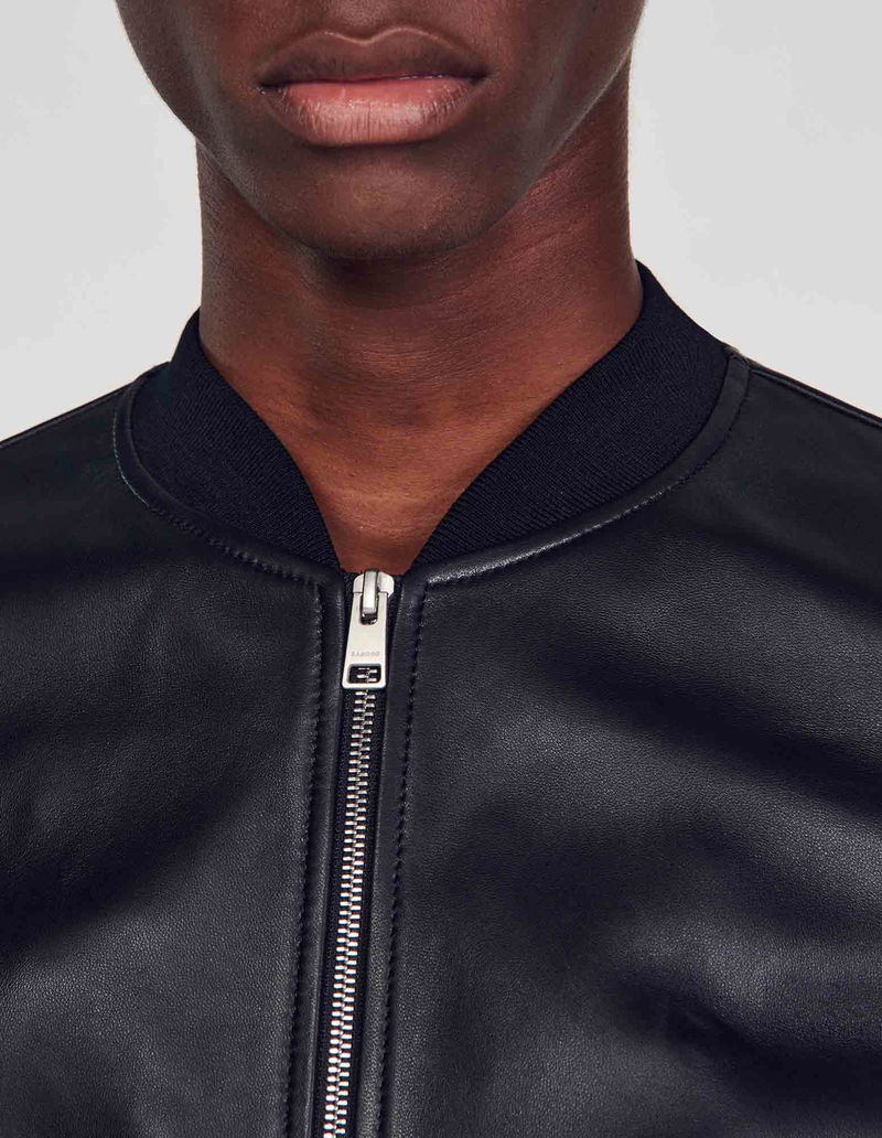 Lambskin leather jacket with ribbed collar, zip fastening and side pockets.