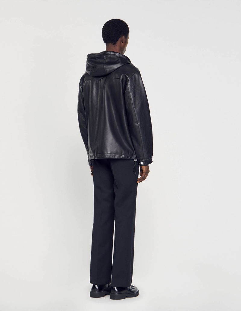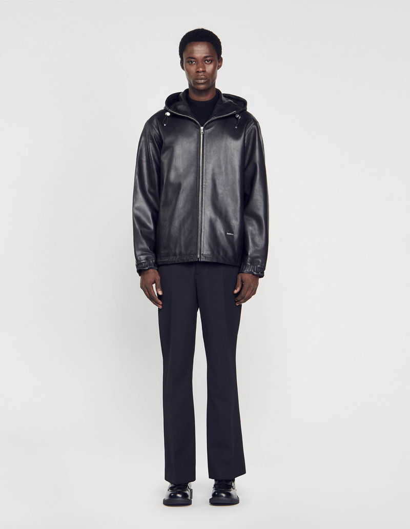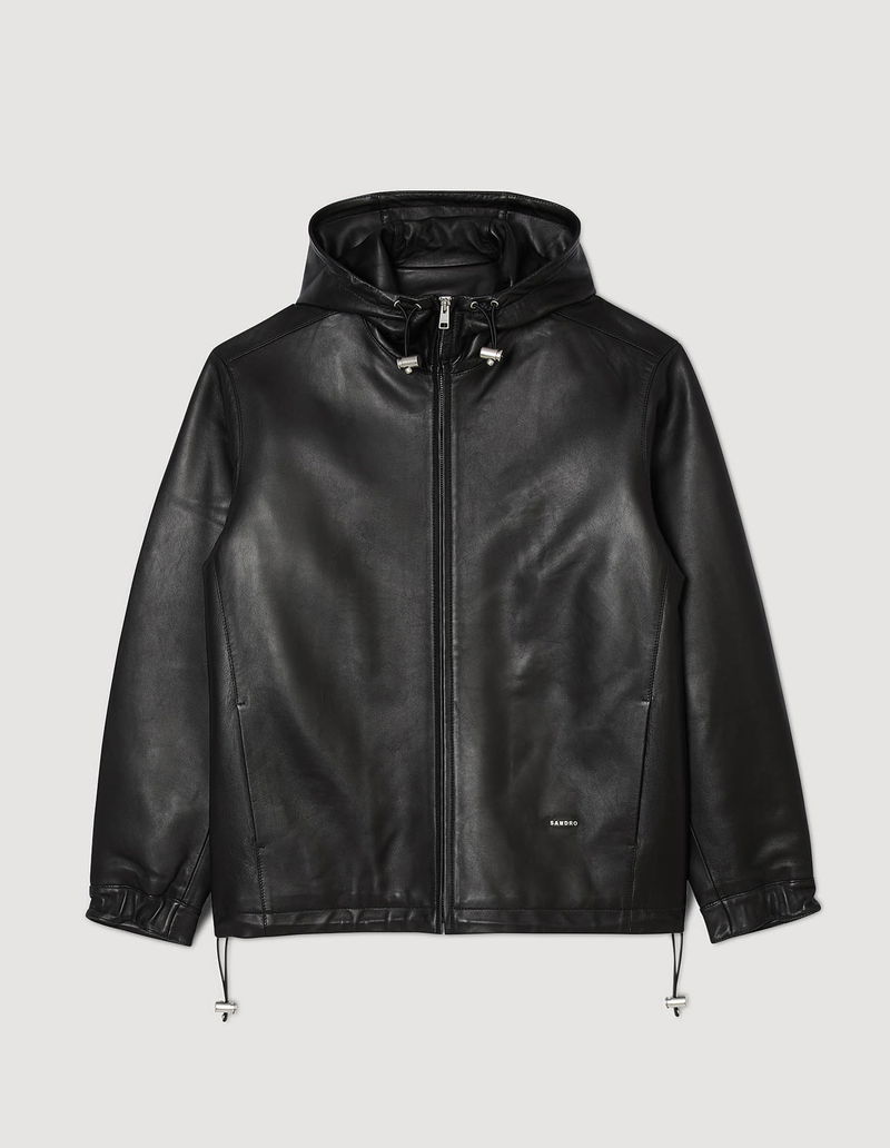 Soft lambskin jacket with a hood, zip fastening, long sleeves and drawstrings.