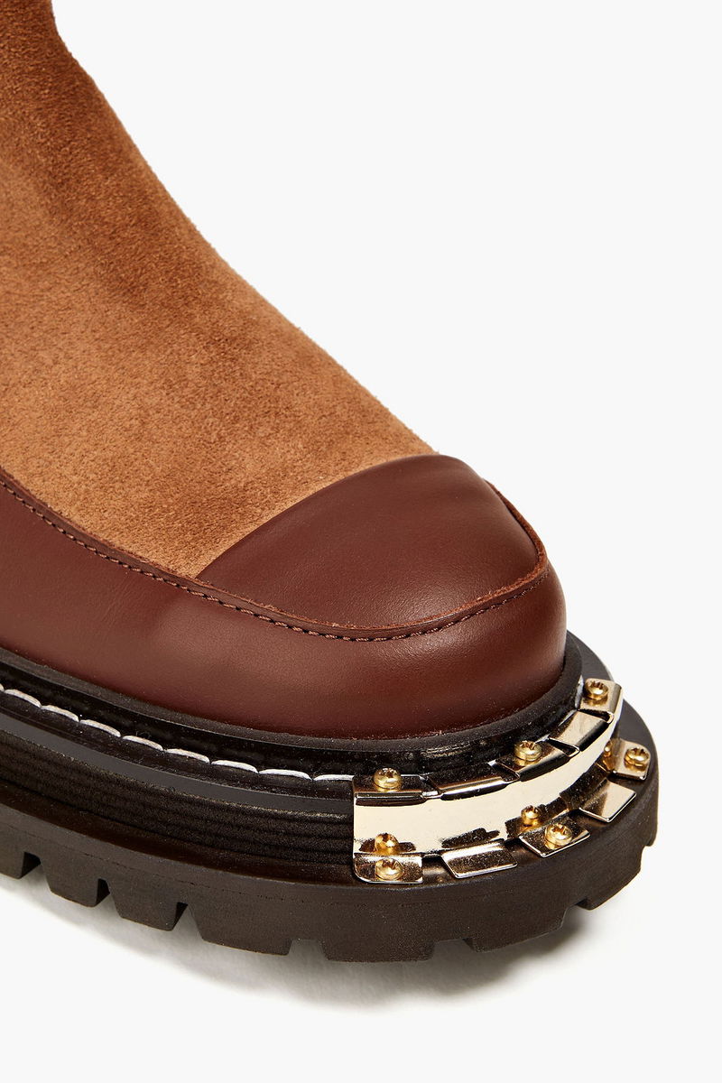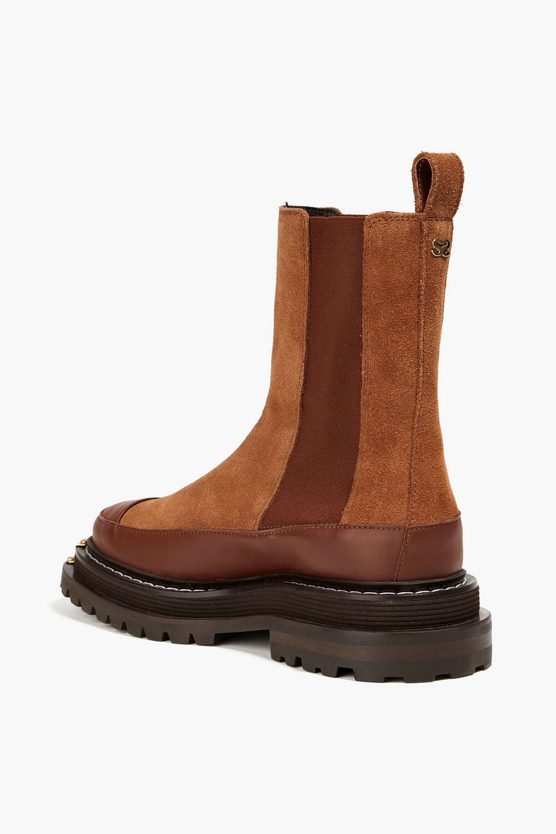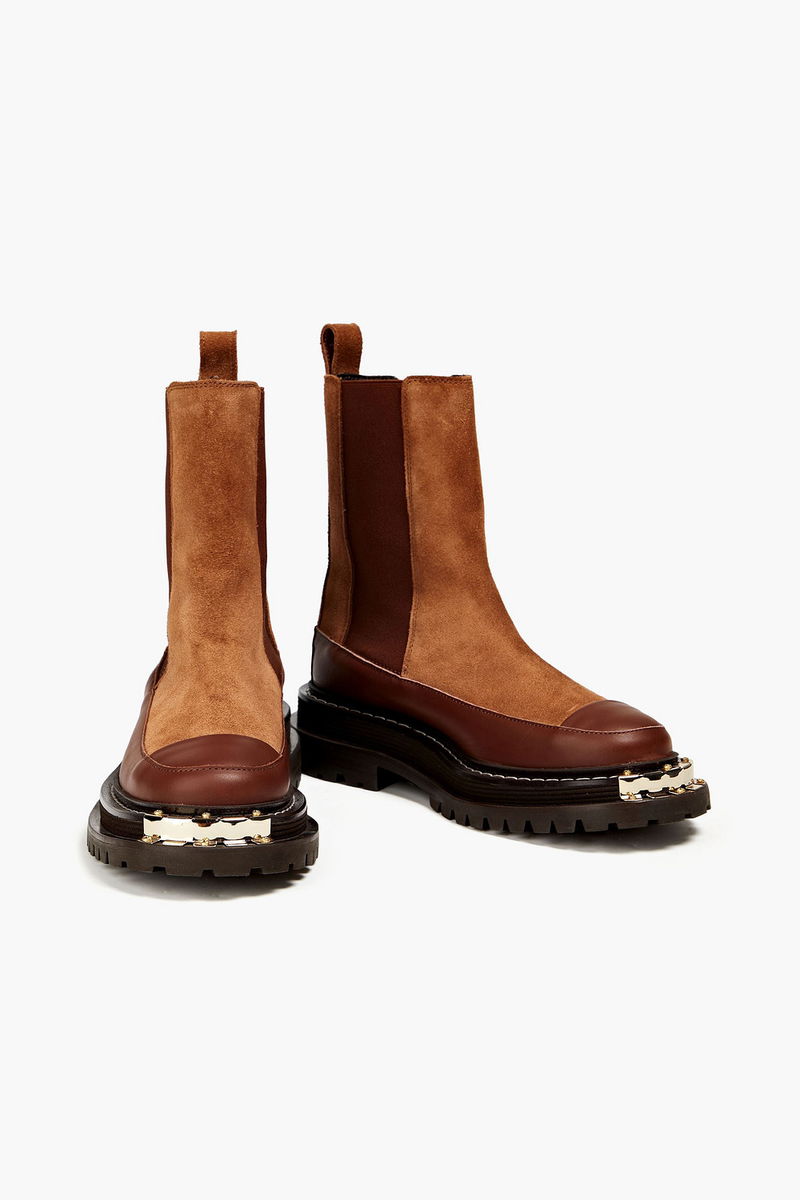 Ankle boots, Suede, Leather, Paneled, Pull tabs, Elasticated inserts, Round toe, Pull on, Rubber lug sole.